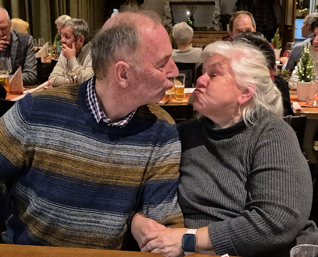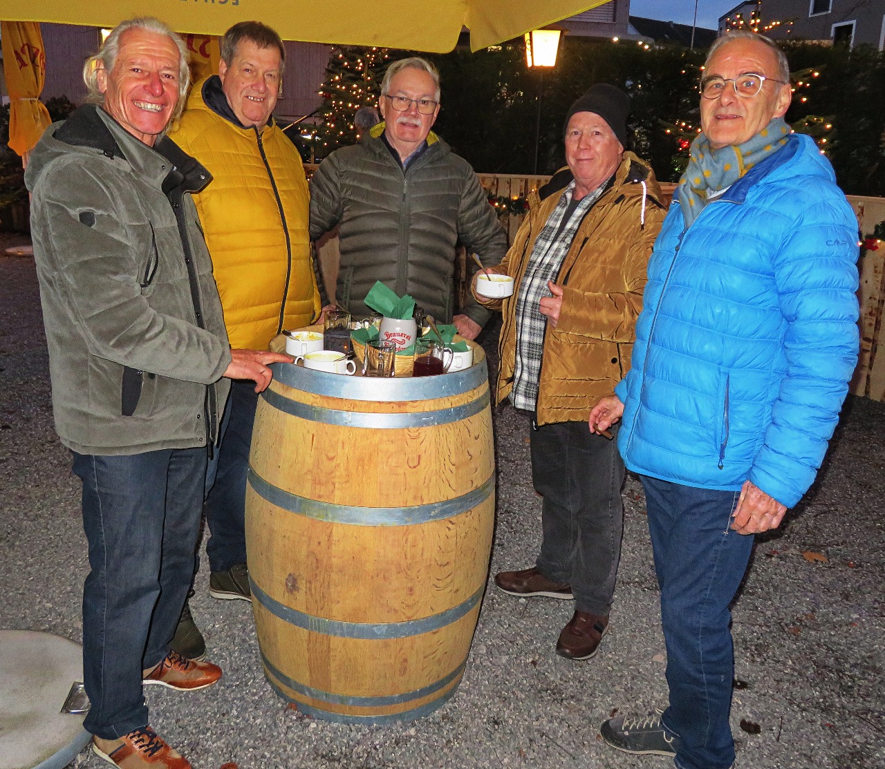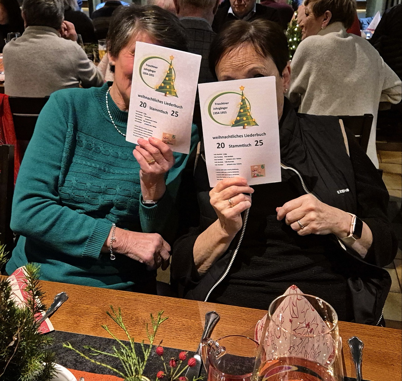 Unser letzter Stammtisch im Jahre 2025 war gleichzeitig unsere Weihnachts-Jahresabschlussfeier! 45 feierlich gestimmte Jahrgänger trafen sich im Punschgarten vom Braugast Kreuz. S'Usschüssle hat alle zu einer feinen Kürbiscremesuppe und Glühwein oder Most eingeladen. Anschließend zügelten wir in den schön geschmückten Saal. Nach der Begrüßung von Peter wurde das Weihnachtliche Liederbuch eingeweiht, unter der Leitung von unserem Musicus Herbert, durften alle kräftig mitsingen. Nächster Programmpunkt war dann: Wie das Usschüssle entstand. Marilyn und Hadwig erzählten die Erinnerungen seit dem Jahre 1976. Herbert hatte dann wieder schöne Lieder bereit und war erfreut, wie gesangsfreudig seine JahrgängerInnen waren. Große Überraschung brachten unsere Barbara und Brigitte mit: senationelle handgemachte Schwarztee Seifen für alle! Auch Lothar hatte seine Frau wieder überredet, für uns feine Keksle zu backen. Honig Werner ließ es sich auch nicht nehmen, wieder eine süße Portion Honig für uns abzufüllen. Rechtzeitig für den Rückblick und die Vorausschau ist dann Walter eingetroffen. Wir konnten nochmal auf ein tolles Jahrgängerjahr zurückblicken mit viel Eindrücken und können gepsannt sein, was das Jahr 2026 alles mit uns vorhat. Bereits im April werden wir unseren 100. Stammtisch feiern können. Und natürlich gibt es im Juni wieder einen sensationellen Ausflug! Nach dem offiziellen Teil wurde dann noch dem leiblichen Wohl gefrönt! So wurde das alte Jahr harmonisch verabschiedet mit viel Vorfreude, was im Neuen wohl kommen mag.