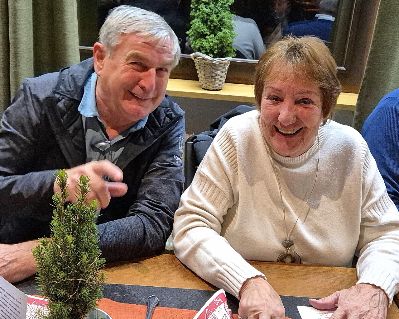 23 Johrgänger trafen sich um 14:30 Uhr am Bahnhof Frastanz um nach Bludesch in den Klosterwald zu fahren. Unser leider verstorbene Jahrgänger Hubert Siegmund wurde hier beigesetzt und wir verabschiedeten uns gemeinschaftlich bei seinem Baum 598. Nach einer kleinen Wanderung durch den Klosterwald gings dann schnurrstracks in die Braugast Kreuz. Hier trudelten noch einige johrgänger ein und wir waren dann 30 Personen im Kreuzsaal versammelt. Und dann gab es auf einmal ein nichtdurchschaubares Sesselrücken auf den ersten Plätzen und keiner kannte sich wirklich aus. Dann die große Überraschung - Ernst betrat gekleidet mit sämtlichen Johrgängeraccessoires der vergangenen Jahre den Saal und hielt eine kleine Laudatio für`s Johrgängerusschüssle. Total überrascht wurden dann die "glorreichen" 4 - Peter-Hadwig-Marilyn und Walter herausgerufen und Ernst übergab ihnen im Namen aller Fraschtner Johrgänger ein Geschenk und würdigte somit die "Arbeit" vom Usschüssle. s`Usschüssle bedankt sich ganz herzlich bei allen Johrgängern und meinte noch - es wär aber net notwendig gsi!!! Wir versprechen aber auch für die Zukunft - wir versuchen immer hart am Wind zu sein und freuen uns auf noch hoffentlich viele gemeinsame Ausflüge, Stammtische und andere Aktivitäten im Rahmen unserer tollen Johrgängergemeinschaft - eigentlich müsste man sagen - Johrgängerfreundschaftskreis. Um 17:00 Uhr kam dann noch als letzter unser Musicus Herbert ins Kreuz und zeigte uns noch seinen Lebensfilm, der zu seinem 70. Geburtstag am 12. Oktober 2025 entstand. Großzügigerweise lud er nach der Filmvorführung noch alle Johrgänger auf ein Schnäpsle ein - herzlichen Dank dafür. Dieser Überraschungsstammtisch endete harmonisch und gesellig so gegen 20:00 Uhr.