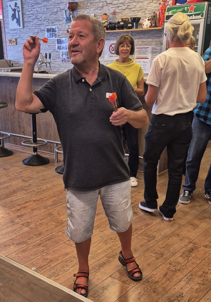 Volltreffer - kann man zu unserem aktiv-Juli-Stammtisch 2025 nur sagen. 26 Johrgänger trafen sich im Dart Club Wild Devils in Frastanz zu einem ausgefüllten Nachmittag. Obmann Thomas Stigger begrüßte uns recht herzlich und erzählte noch ein wenig über den Dartclub Wild Devils. Nach einer kurzen Einführung in den Dartsport wurden unsere Johrgänger in Gruppen eingeteilt und somit konnte das erste Johrgänger Dartturnier starten. Wir hatten 2 Runden mit 3 x 7 Würfen zu absolvieren und alle, wirklich alle waren mit Feuereifer dabei. Bei eingen kam dann auch noch richtige Kampfsportdynamik und absoluter Siegeswille zum tragen. Nach erfolgreicher Absolvierung des Turnier servierte uns Thomas noch ein Buffet vom allerfeinsten -sowas hend mir üs net erwartet- und zum Abschluss gab`s noch einen flambierten Nachtisch - das war wirklich 5***** Sterne würdig. Bei der Resultatsverkündigung durch unseren Peter konnten wir der Siegerin Eveline Dünser noch mit viel Applaus gratulieren. Bis ca. 21:00 Uhr räumten dann auch noch die letzten Johrgänger das Vereinslokal und wir gemeinsam können uns nur noch beim gesamten Team vom Dartclub ganz recht herzlich für den gelungenen Nachmittag bedanken.