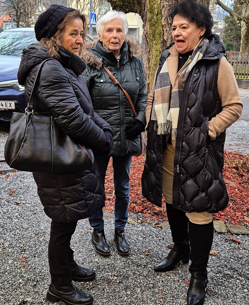 23 Johrgänger trafen sich um 14:30 Uhr am Bahnhof Frastanz um nach Bludesch in den Klosterwald zu fahren. Unser leider verstorbene Jahrgänger Hubert Siegmund wurde hier beigesetzt und wir verabschiedeten uns gemeinschaftlich bei seinem Baum 598. Nach einer kleinen Wanderung durch den Klosterwald gings dann schnurrstracks in die Braugast Kreuz. Hier trudelten noch einige johrgänger ein und wir waren dann 30 Personen im Kreuzsaal versammelt. Und dann gab es auf einmal ein nichtdurchschaubares Sesselrücken auf den ersten Plätzen und keiner kannte sich wirklich aus. Dann die große Überraschung - Ernst betrat gekleidet mit sämtlichen Johrgängeraccessoires der vergangenen Jahre den Saal und hielt eine kleine Laudatio für`s Johrgängerusschüssle. Total überrascht wurden dann die "glorreichen" 4 - Peter-Hadwig-Marilyn und Walter herausgerufen und Ernst übergab ihnen im Namen aller Fraschtner Johrgänger ein Geschenk und würdigte somit die "Arbeit" vom Usschüssle. s`Usschüssle bedankt sich ganz herzlich bei allen Johrgängern und meinte noch - es wär aber net notwendig gsi!!! Wir versprechen aber auch für die Zukunft - wir versuchen immer hart am Wind zu sein und freuen uns auf noch hoffentlich viele gemeinsame Ausflüge, Stammtische und andere Aktivitäten im Rahmen unserer tollen Johrgängergemeinschaft - eigentlich müsste man sagen - Johrgängerfreundschaftskreis. Um 17:00 Uhr kam dann noch als letzter unser Musicus Herbert ins Kreuz und zeigte uns noch seinen Lebensfilm, der zu seinem 70. Geburtstag am 12. Oktober 2025 entstand. Großzügigerweise lud er nach der Filmvorführung noch alle Johrgänger auf ein Schnäpsle ein - herzlichen Dank dafür. Dieser Überraschungsstammtisch endete harmonisch und gesellig so gegen 20:00 Uhr.
