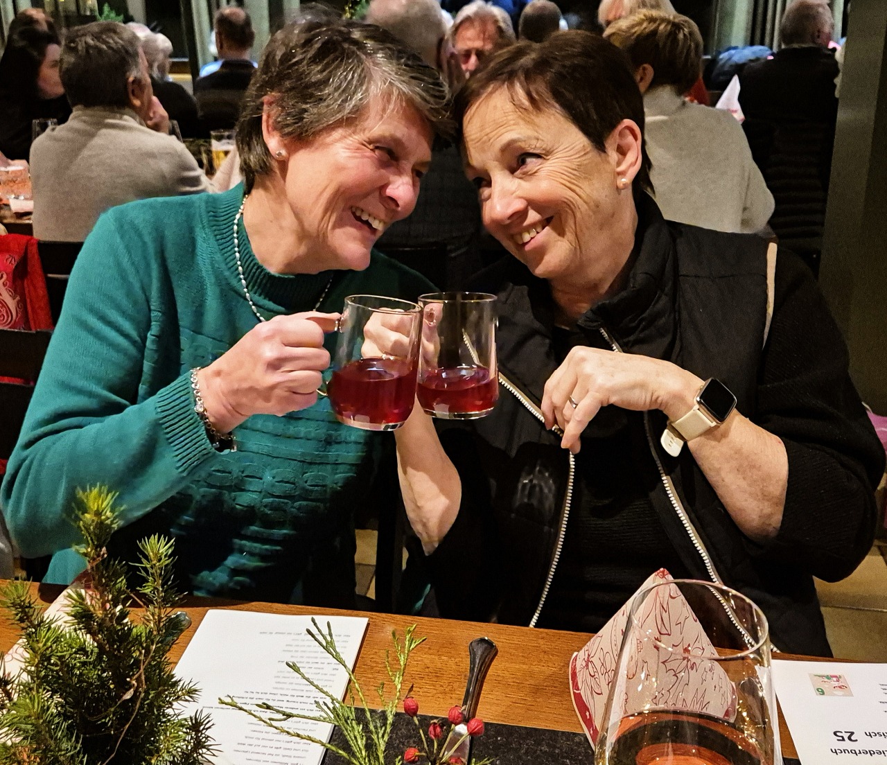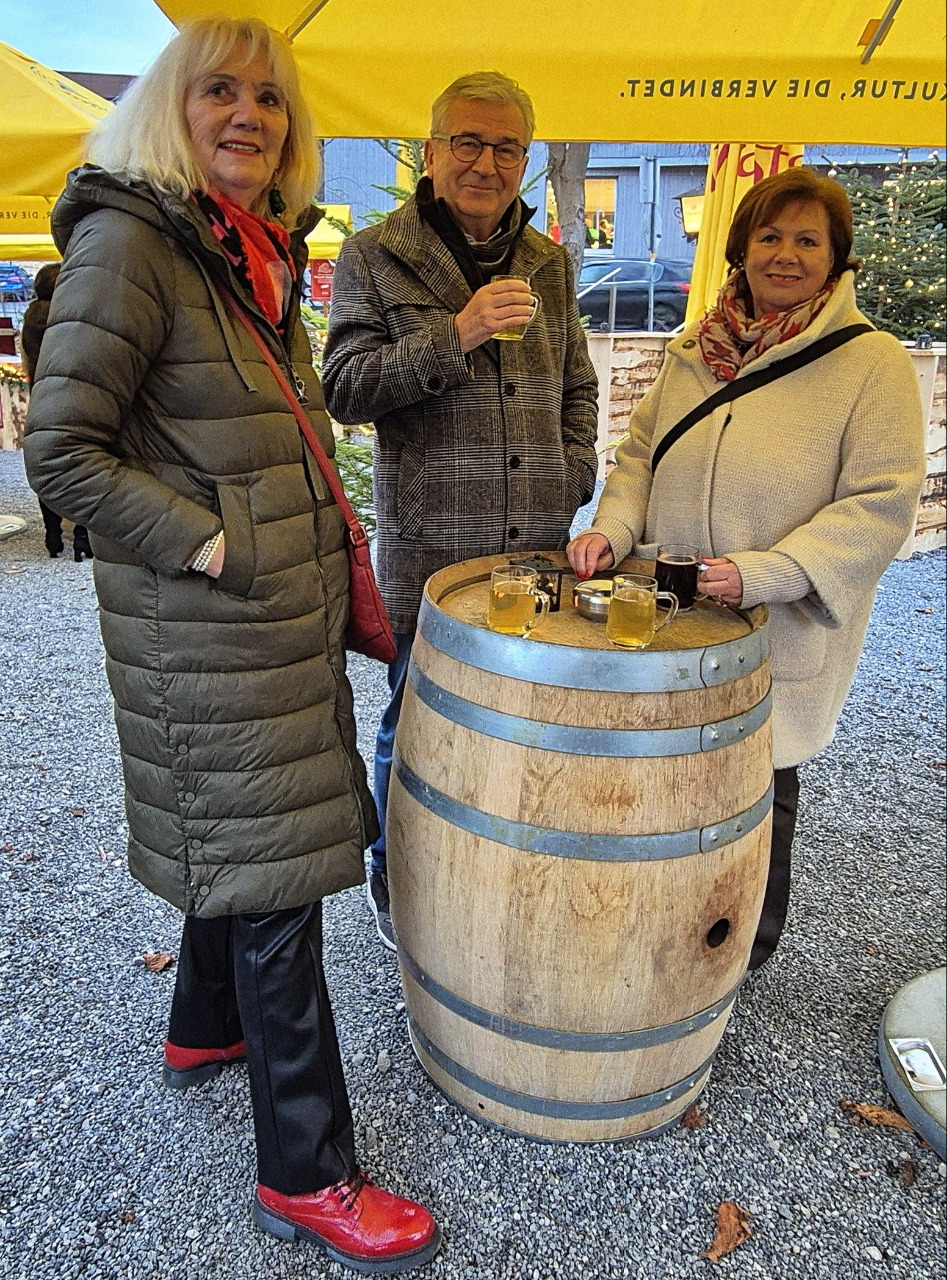 Unser letzter Stammtisch im Jahre 2025 war gleichzeitig unsere Weihnachts-Jahresabschlussfeier! 45 feierlich gestimmte Jahrgänger trafen sich im Punschgarten vom Braugast Kreuz. S'Usschüssle hat alle zu einer feinen Kürbiscremesuppe und Glühwein oder Most eingeladen. Anschließend zügelten wir in den schön geschmückten Saal. Nach der Begrüßung von Peter wurde das Weihnachtliche Liederbuch eingeweiht, unter der Leitung von unserem Musicus Herbert, durften alle kräftig mitsingen. Nächster Programmpunkt war dann: Wie das Usschüssle entstand. Marilyn und Hadwig erzählten die Erinnerungen seit dem Jahre 1976. Herbert hatte dann wieder schöne Lieder bereit und war erfreut, wie gesangsfreudig seine JahrgängerInnen waren. Große Überraschung brachten unsere Barbara und Brigitte mit: senationelle handgemachte Schwarztee Seifen für alle! Auch Lothar hatte seine Frau wieder überredet, für uns feine Keksle zu backen. Honig Werner ließ es sich auch nicht nehmen, wieder eine süße Portion Honig für uns abzufüllen. Rechtzeitig für den Rückblick und die Vorausschau ist dann Walter eingetroffen. Wir konnten nochmal auf ein tolles Jahrgängerjahr zurückblicken mit viel Eindrücken und können gepsannt sein, was das Jahr 2026 alles mit uns vorhat. Bereits im April werden wir unseren 100. Stammtisch feiern können. Und natürlich gibt es im Juni wieder einen sensationellen Ausflug! Nach dem offiziellen Teil wurde dann noch dem leiblichen Wohl gefrönt! So wurde das alte Jahr harmonisch verabschiedet mit viel Vorfreude, was im Neuen wohl kommen mag.